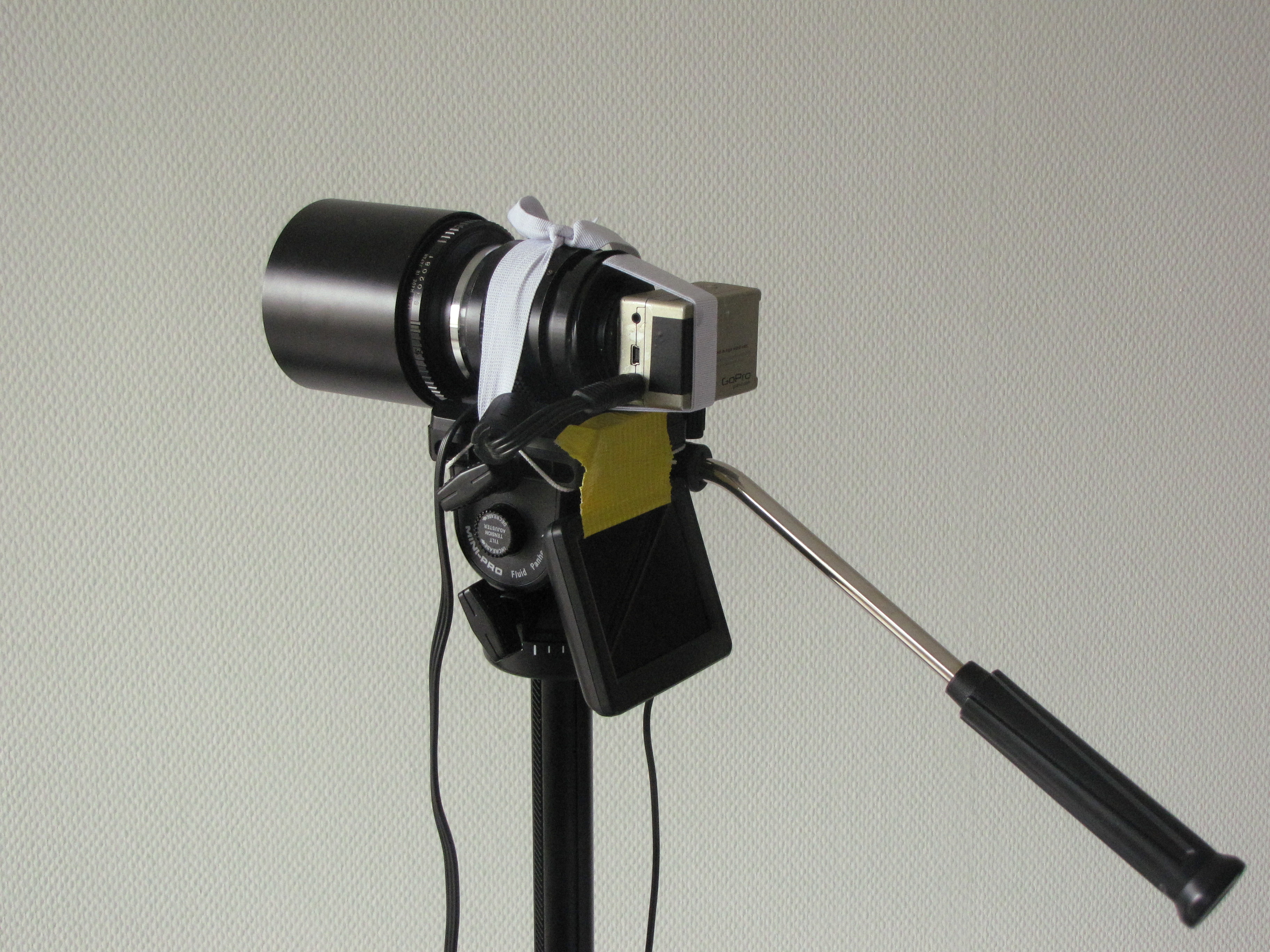 Old GoPro with removed lens. Attached to it: a 500mm Lens plus a 2x Tele-Converter. Due to the small sensor-size, this results in... well... a LOT! City-Lights included, sharpness excluded. You find the PureData-patches